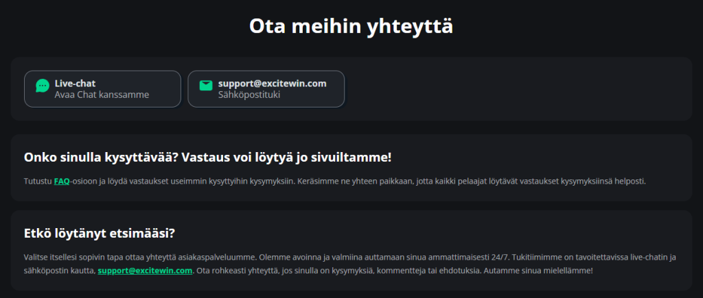 Asiakaspalvelu Excite Win Kasinolla
