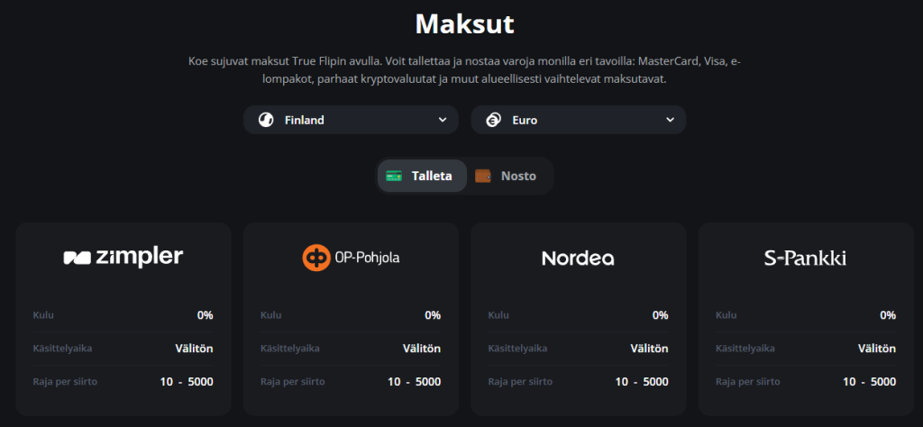 Käytettävissä olevat valuutat, maat ja maksutavat Excite Win Kasinolla