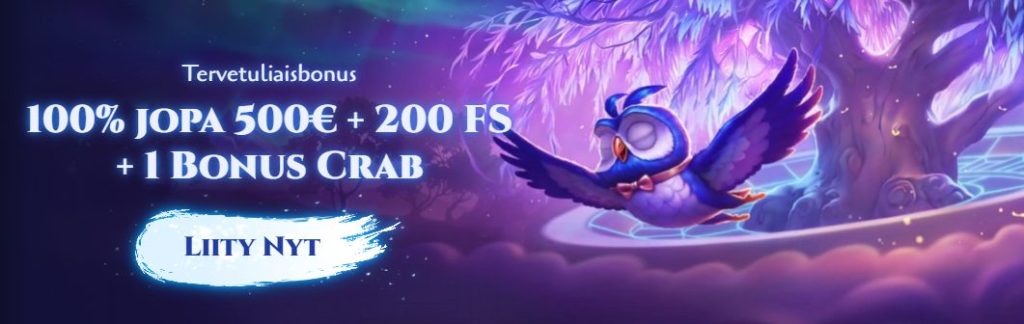 - 100 % bonus jopa 500 € asti + 200 ilmaiskierrosta