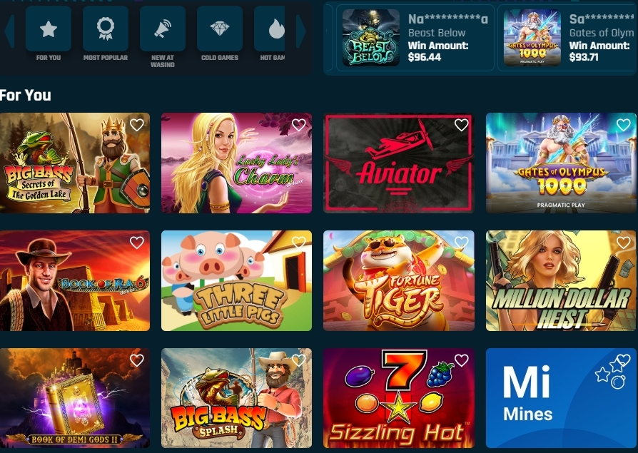 The website of Wasino Casino boasts a modern design that is easy to navigate. The color scheme is sleek, with dark tones paired with vibrant highlights that create an inviting atmosphere. The homepage is well-organized, with clear sections for games, promotions, payment methods, and customer support. Whether you’re accessing the site from a desktop or mobile device, Wasino Casino ensures that players can easily find what they need.