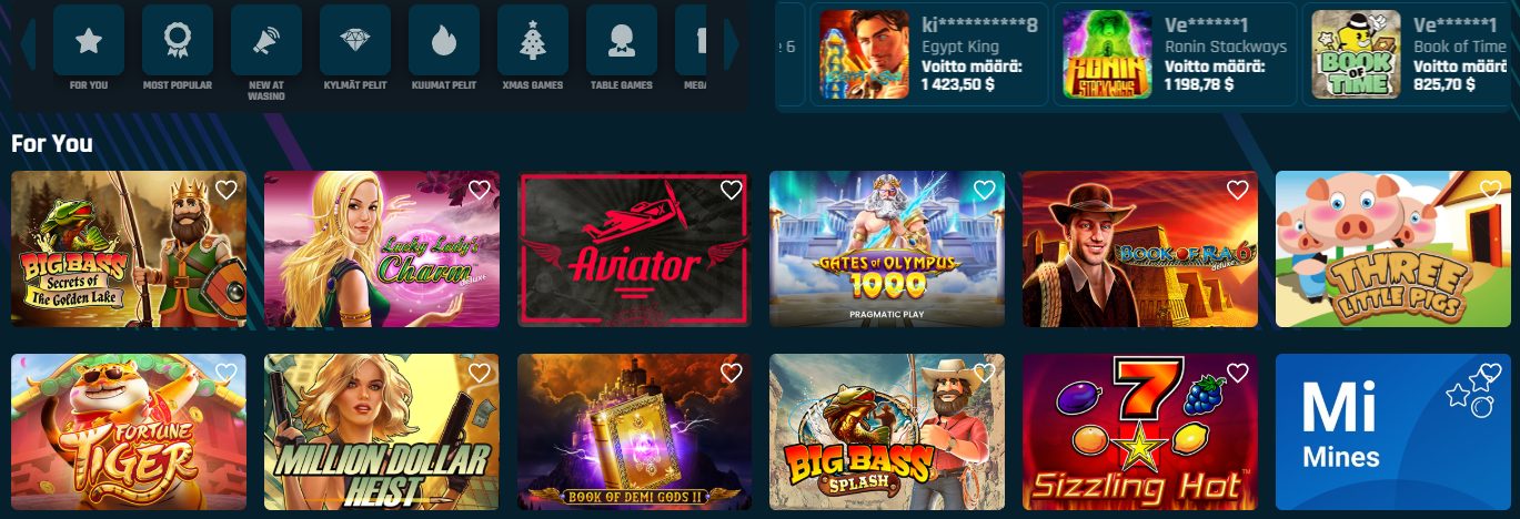 Wasino Kasino tarjoaa monipuolisen nettikasinokokemuksen erinomaisella pelivalikoimalla, anteliailla bonuksilla ja luotettavalla asiakaspalvelulla. Olipa kyseessä kolikkopelit, pöytäpelit tai live-kasinon jännitys, Wasino Kasino tarjoaa alustan, jossa pelaajat voivat nauttia monipuolisesta pelitarjonnasta. Sivusto on mobiiliystävällinen, joten pelaajat voivat käyttää suosikkipelejään milloin ja missä tahansa. Turvalliset maksutavat ja asiakastyytyväisyyteen keskittyminen tekevät Wasino Kasinosta luotettavan valinnan sekä aloittelijoille että kokeneille pelaajille.